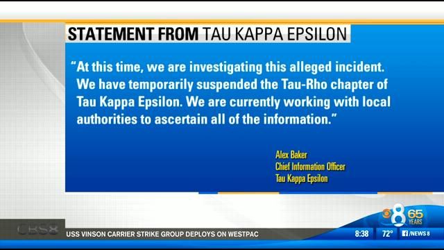CSUSM and Oceanside police are looking into a report of an alleged rape May 4 at an off-campus party hosted by the fraternity, and additional reports that members were involved in other sexual assaults on or near the campus and at off-campus residences where Tau Kappa Epsilon members lived, according to a university statement.